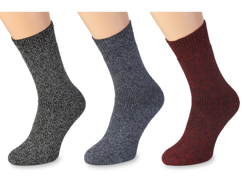 Meleg gyapjú zokni szett Merino Natural Wool nagyon puha és lágy gyapjúból. A meleg gyapjú zokni szett 3 pár zoknit tartalmaz különböző színekben. A színes minták megfelelnek a képen láthatóknak. A felhasznált anyagnak köszönhetően a zokni alkalmazkodik a lábfej méretéhez.