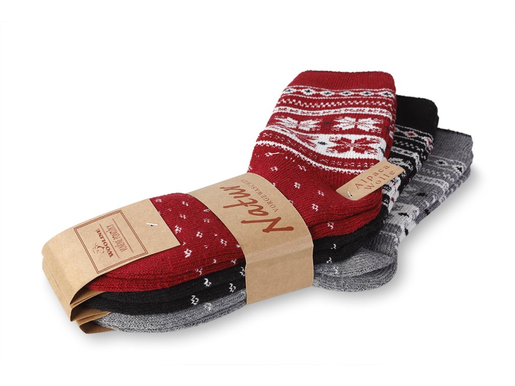 A Wooline Natur meleg gyapjú zokni szett nagyon puha és lágy gyapjúból készült. A láma alpaka gyapjú zokni szett 3 pár különféle mintás zoknit tartalmaz. A minták megfelelnek a képen láthatóknak. A felhasznált anyagnak köszönhetően a zokni alkalmazkodik a lábfej méretéhez.