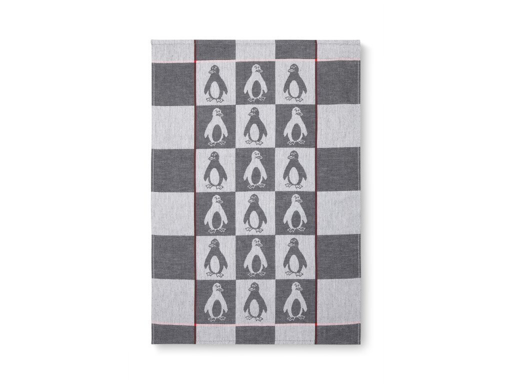 A jacquard konyhai törlőkendők egyiptomi pamutból készülnek. A színkombináció szürke, fehér és piros elemekkel. A törlőkendőkre vidám pingvinek vannak nyomtatva. A pamut konyharuhák minden konyhában nélkülözhetetlen praktikus eszköznek számítanak. Nagyon jó nedvszívó képességükkel tűnnek ki, nem engedik ki a fonalat, és a szélek nem kopnak ki.