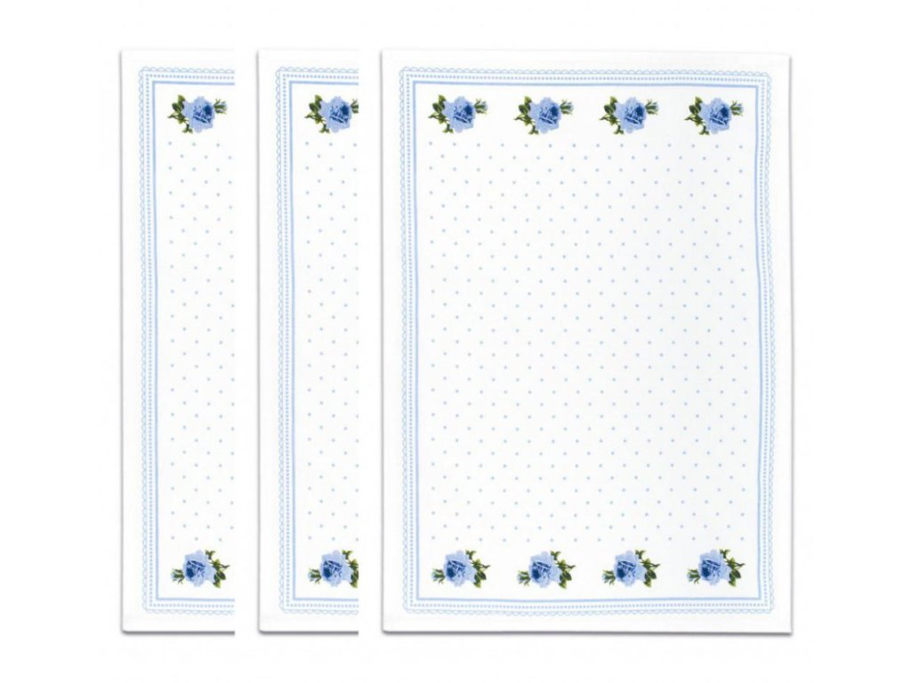 3 db kék rózsamintás konyharuha 50 x 70 cm