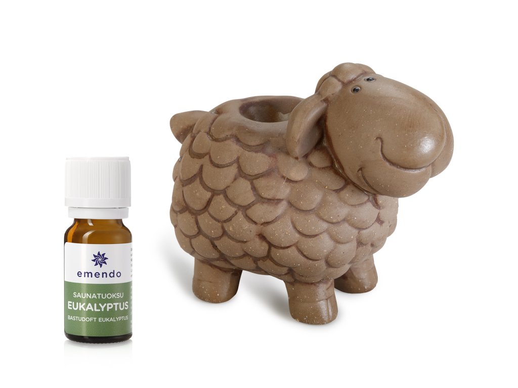 Anyag: kerámia; Szín: barna; Motívum: juh; Méret: 12 x 10 cm; Használható : illóolajokkal; Tartalmazza: 10 ml Eukaliptusz illóolaj