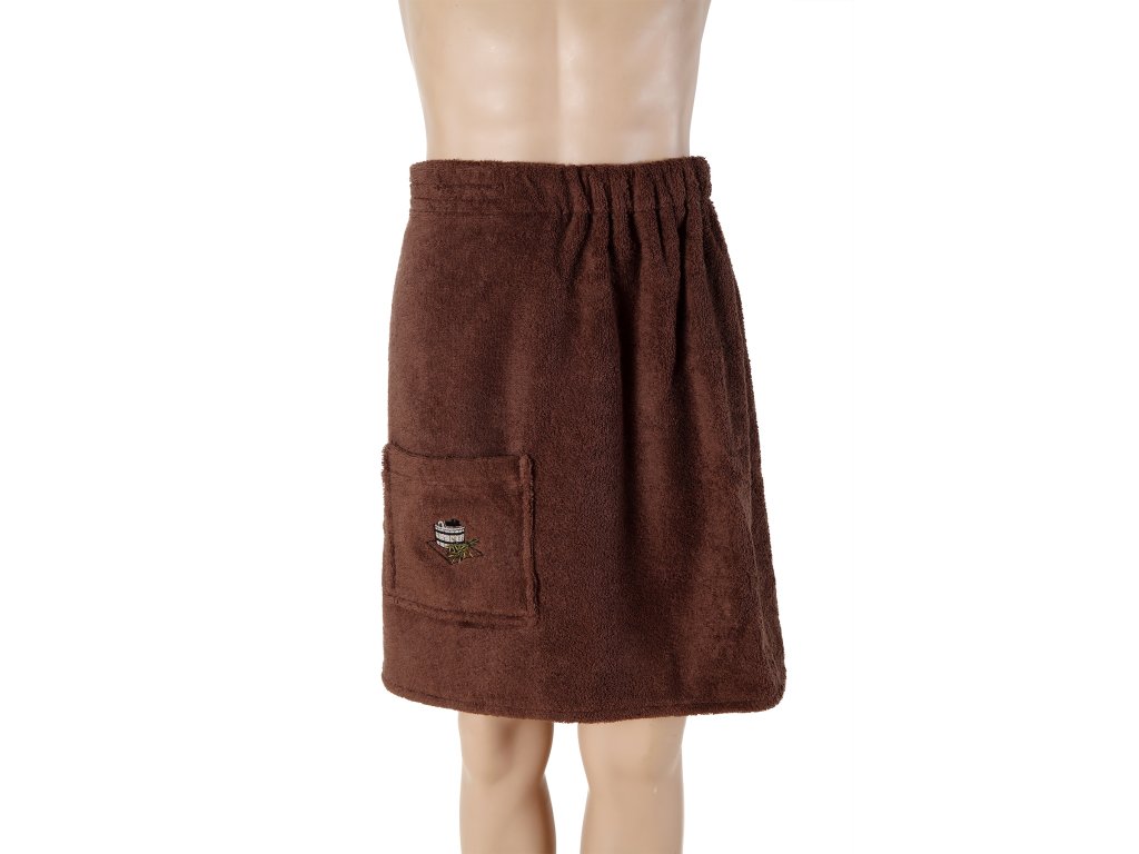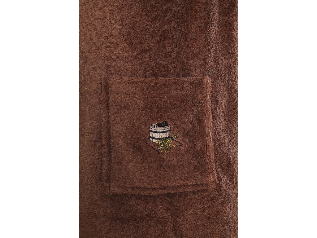 Anyag: 100% pamut, Szín: sötétbarna, Méret: 55 x 150 cm, Alkalmas: férfiaknak, Felhasználás: szauna kiegészítők, Rögzítés: tépőzáras