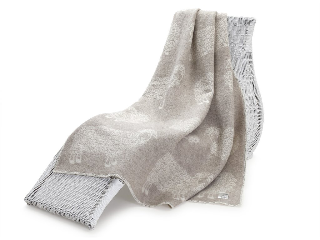 Anyag: 88% új-zélandi juhgyapjú, 12% pamut; Méret: 130 x 200 cm, Szín: világosbarna, Ábrázolt motívum: bárány, Súly: 1,2 kg, Súly: 480g/m2