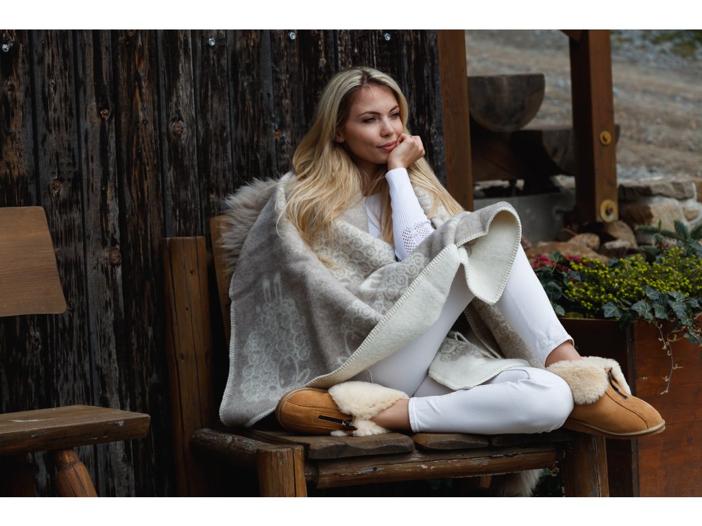 Ez a meleg pléd göndör báránymotívummal 88% új-zélandi gyapjúból és 12% pamutból készült. A gyapjú legjobban értékelt tulajdonságai közé tartozik a puhasága és melegsége, valamint kiváló légáteresztő képessége. Praktikus 130 x 200 cm-es méretének köszönhetően a fotelben való összebújás mellett elegáns ágytakaróként vagy kanapéhuzatként is használhatja.