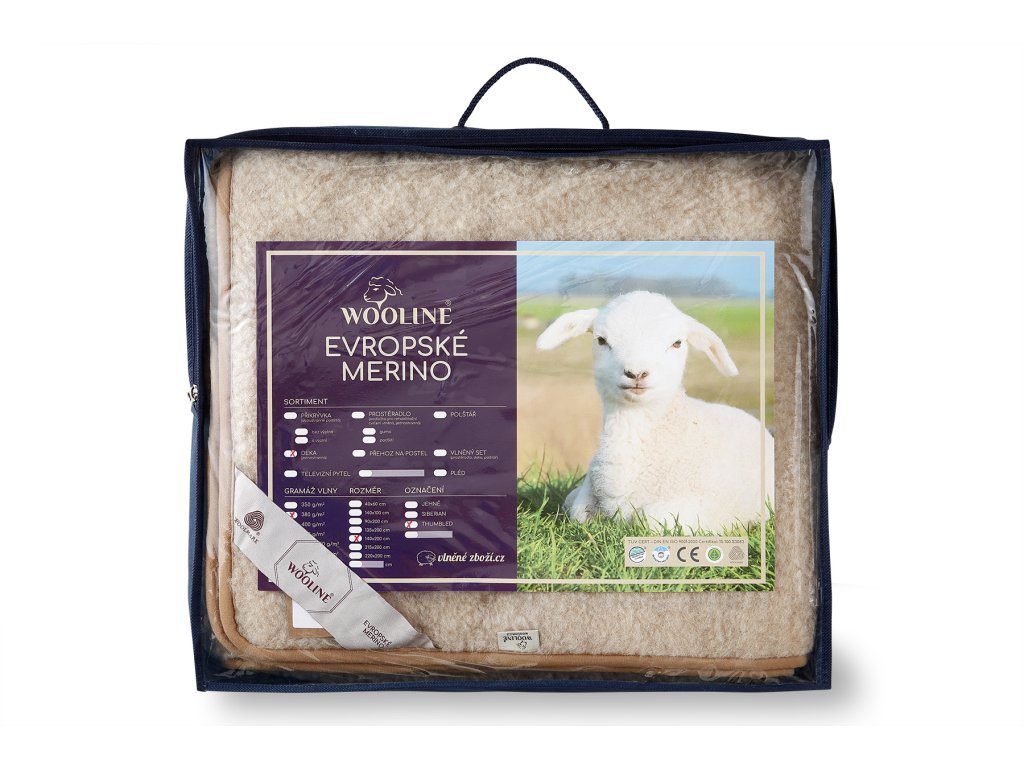 Anyag: 100% európai merinó (100% birkagyapjú), Méret: 75 x 100 cm vagy 140 x 200 cm, Súly: 75 x 100 cm 0,4kg, a méret 140 x 200 cm 1,2 kg, Szín: bézs, Szálsűrűség: 380g/m2