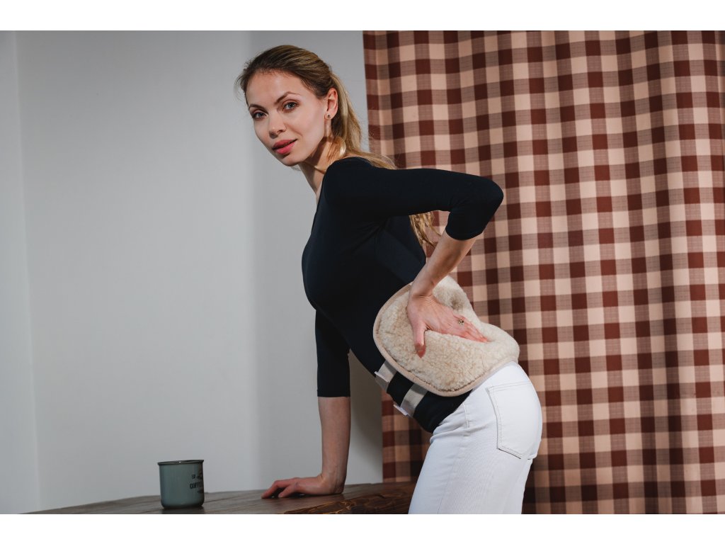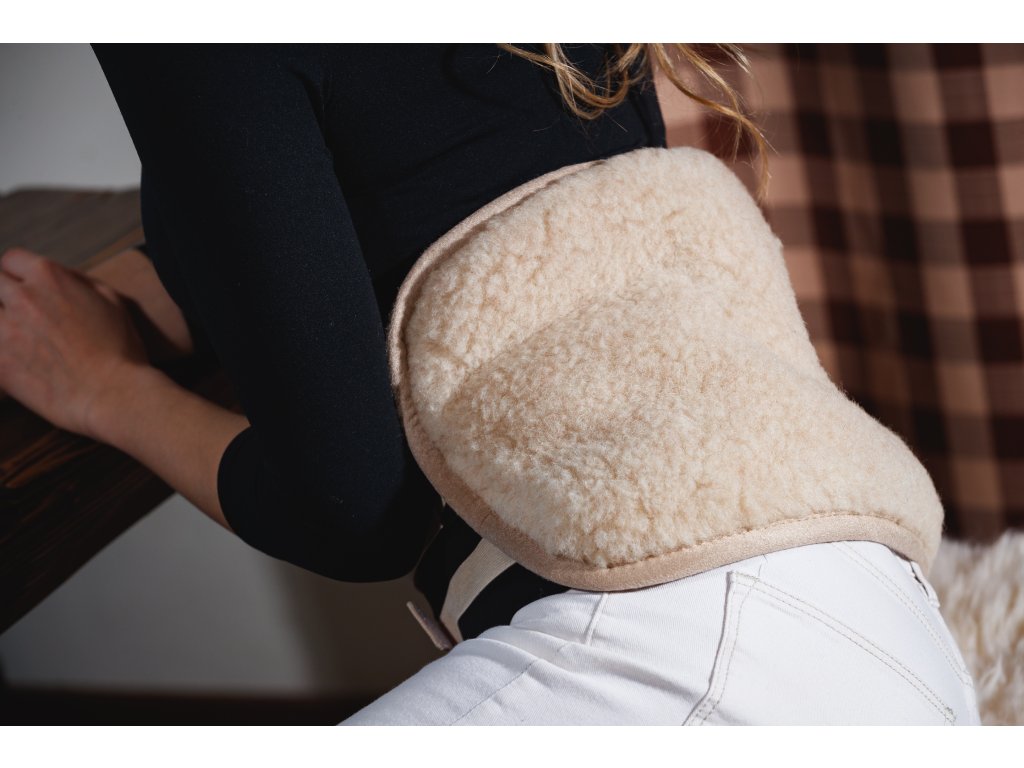 Bézs birkagyapjú vesevédő tépőzárral A TÉPŐZÁRNAK KÖSZÖNHETŐEN TÖKÉLETESEN TART!