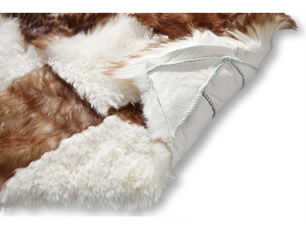 Természetes, 80 x 175 cm méretű dekoratív szőnyeg. A szőnyeg egyenlő méretű, körülbelül 20 x 20 cm-es rombuszok összevarrásával készült. A szőnyeg egyedi kialakításának köszönhetően nagyon különleges. A bőrdarabokat kézzel varrják össze, ennek köszönhetően a szőnyeg nagyon precízen készül, és minden egyes darab eredeti. A szőnyeg rövidebb oldalait ugyanezzel a birkaszőr mintával díszítik, hogy az egésznek egységes megjelenést kölcsönözzenek.