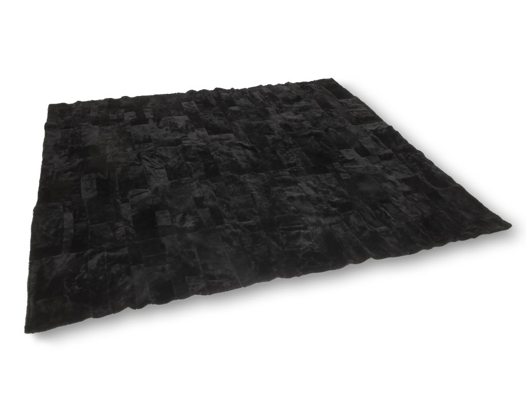 Természetes dekoratív szőnyeg, amelyet különböző méretű, fekete színű birkabőr téglalapok összevarrásával hoztak létre. Ez a sima fekete birkabőr szőnyeg 200 x 220 cm-es méretben kapható. Elhelyezése alkalmas nagy reprezentatív terek díszítésére is. A dizájnos szőnyeg nagyon puha és finom tapintású. Bármilyen nyitott térben kitűnik.