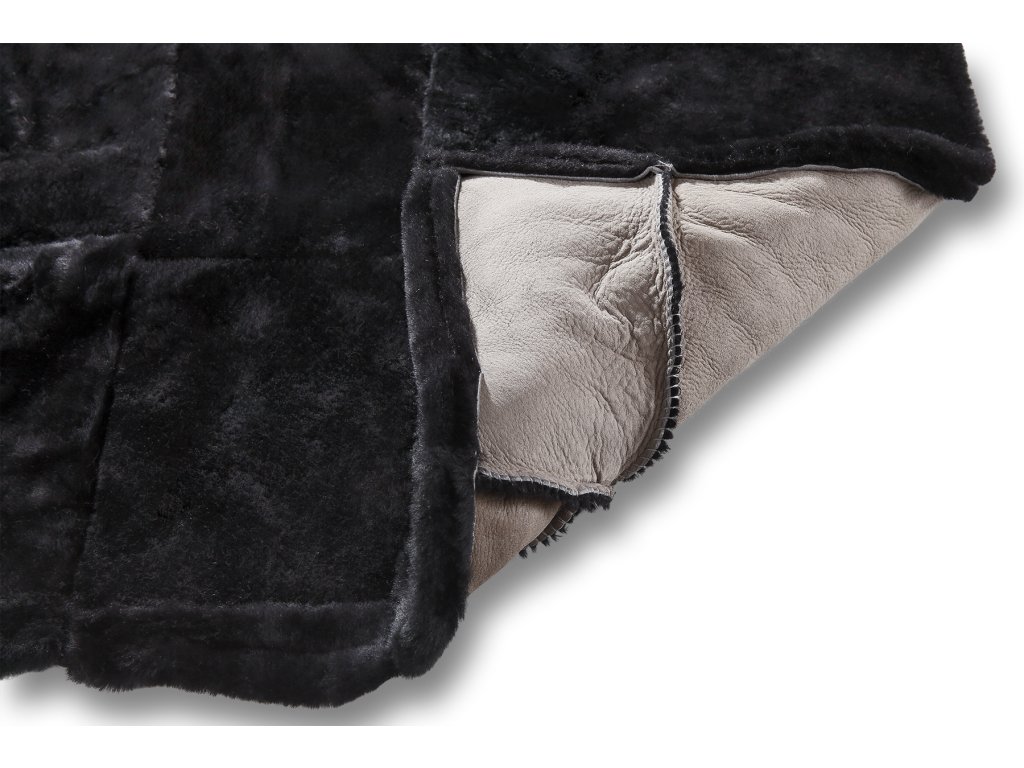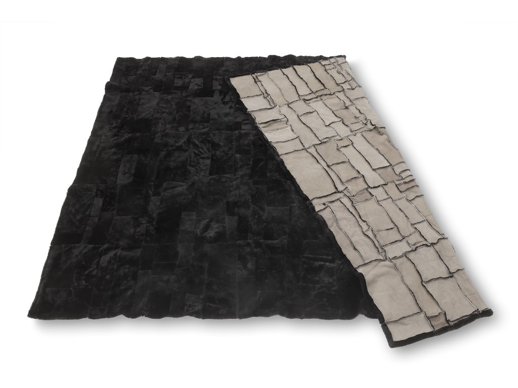 Anyag: birkabőrök darabok összefűzve; Szín: fekete; Méret: 200 cm x 220 cm; Súly: 5 kg