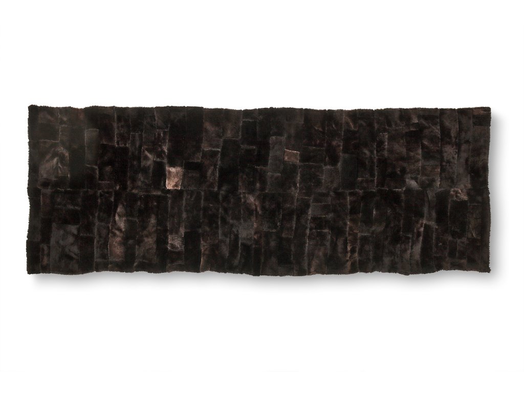 Természetes dekoratív szőnyeg, amelyet különböző méretű, sötétbarna színű birkabőr téglalapok összevarrásával hoztak létre. Ez a sima birkabőr szőnyeg 160 x 60 cm-es méretben kapható. Elhelyezése alkalmas reprezentatív helyiségek díszítésére is. A dizájnos szőnyeg nagyon puha és finom tapintású. Bármilyen nyitott térben kitűnik.