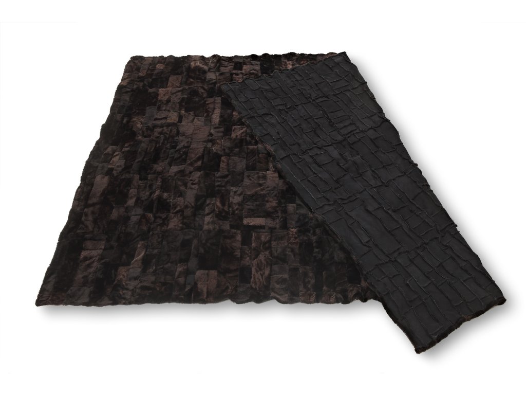Anyag: birkabőrök darabok összeforrasztva; Szín: sötétbarna; Méret: 200 cm x 220 cm; Súly: 5 kg