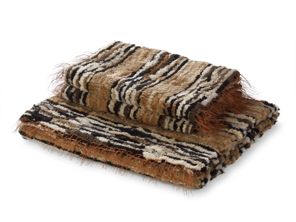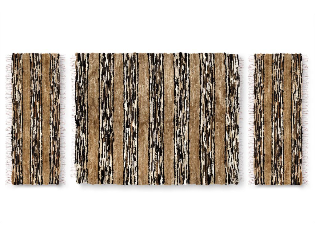 Természetes dekoratív szőtt szőnyegek, amelyek egy szettben érkeznek. Az eredeti és egyedi szőnyegekből álló szett összesen három darabból áll. A nagy szőnyeg mérete 160 x 200 cm, a kis szőnyegek mérete 60 x 160 cm. A szőnyegeket többféle színű bőrből szövik. A szőnyegen világosbarna, sötétbarna és fehér szőrcsíkok váltakoznak. Mivel egyedi termékről van szó, a a színkombináció eltérő. A szőtt szőnyegek összhatása egyedi és különleges. Az alkalmazott szövési módszernek köszönhetően a szőnyeg hagyományos hangulatot kelt. A szőnyegben a sötét és a világos elemek váltakoznak. Így eredeti és különleges kiegészítője lesz bármely belső térnek. A kivitelezés nagyon precíz, és minden egyes darab egy eredeti, amely gyönyörűen fest majd bárhol a nappaliban, egy tágas előszobában vagy a hálószobában is.