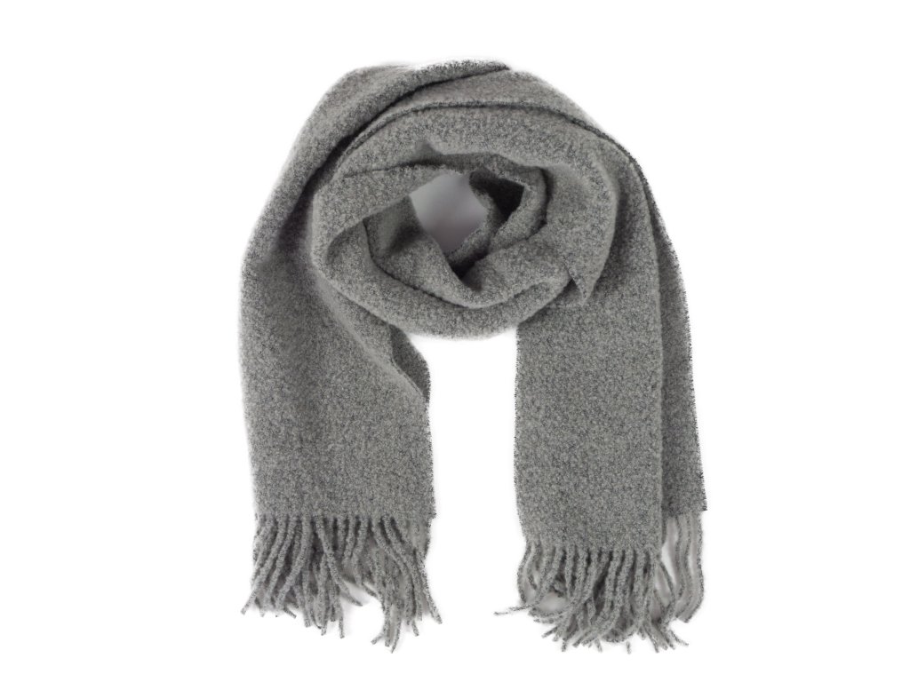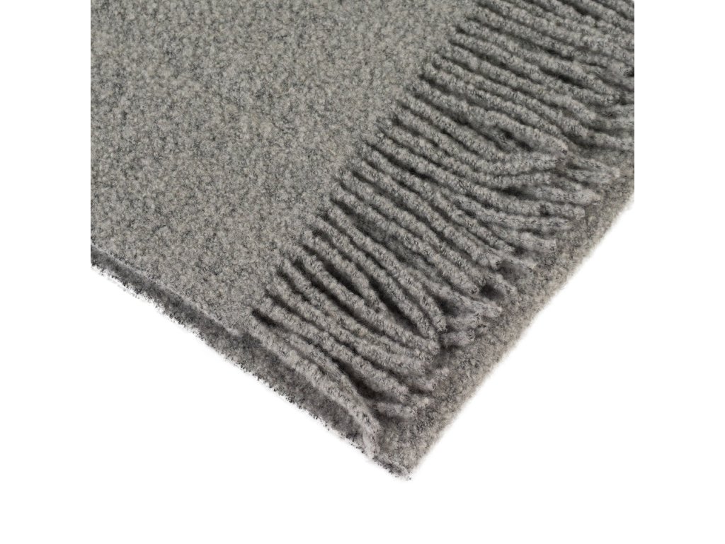 A BOUCLE gyapjú sál rojtokkal szürke színben nagyon finom ausztrál merinói gyapjúból készült, amelyet poliészter szálakkal dúsítottak.