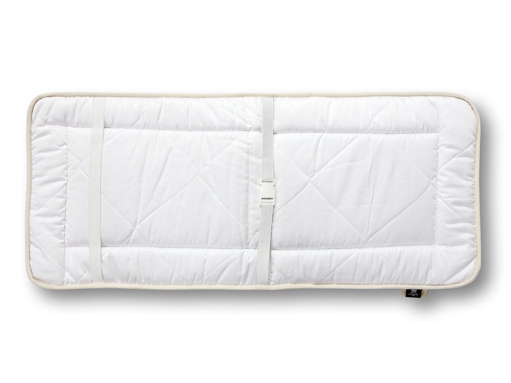 Anyag: 100% merinó juhgyapjú/poliészter, Szín: világosbarna/fehér, Méret: 95 x 41 cm, Ülőfelület: 43 x 41 cm, Fekvőfelület: 51 x 41 cm, Rögzítés: 2,5 cm széles gumipánt a felső részen az ülésre csúsztatáshoz, 2,5 cm széles gumipánt középen egy átlapoló pánttal, Perem: szegélyezett és megerősített