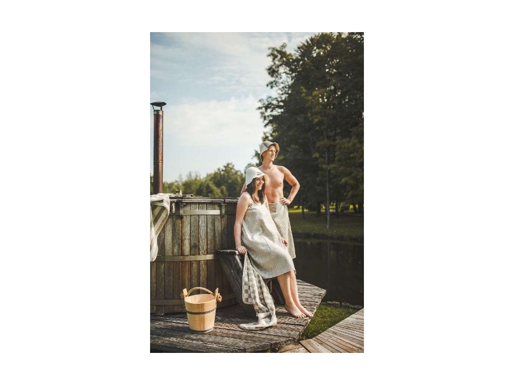 A szauna waffle kiltek 75% vászonból és 25% pamutból készült. A szauna kilt nagyon népszerű szauna kiegészítő, amelyet különösen a férfiak kedvelnek. Egyszerűen tekerje magára a ruhát, és rögzítse elöl tépőzárral. Ugyanezt megtehetné egy klasszikus törölközővel is, de ennek van egy bizonyos hátránya, hogy a legkevésbé alkalmas pillanatban szeret lecsúszni a testről. Ez nem fordulhat elő a szaunaruhában. A szaunaruha mindig ott marad, ahol lennie kell. Tökéletesen eltakarja a testet és felszívja a felesleges nedvességet. A darázsmintás anyagú szaunaruhák könnyebbek, mint a frottírtörülközők, és könnyebben karbantarthatók.
