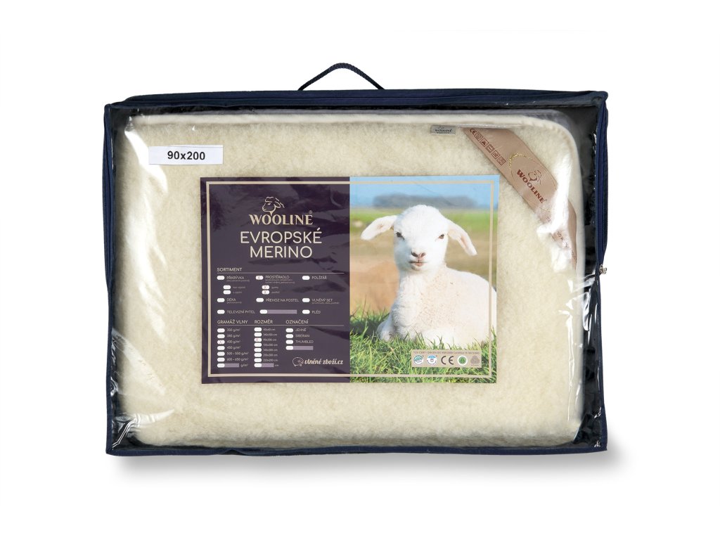 100% európai merinó / pamut, Méret: 90 x 200 cm, Súly: 400g/m2