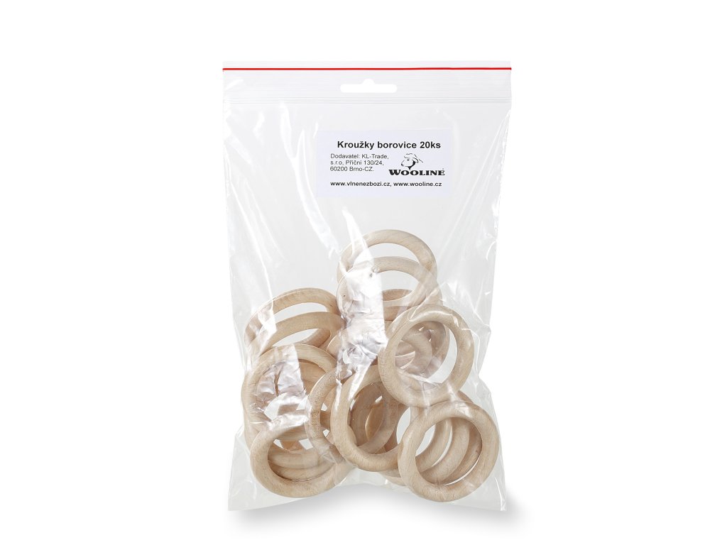 A csomag 20 darab egyforma színű fából készült karikát tartalmaz.