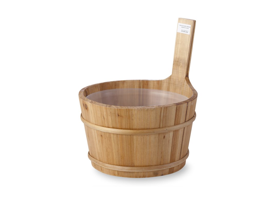 A szaunavödör légmentes műanyag betétet tartalmaz, amely a vödörnek hosszabb élettartamot biztosít, megkönnyíti tisztítását és higiénikus körülményeket teremt. A műanyag betét megvédi a fát a vízzel való közvetlen érintkezéstől, és így meghosszabbítja az élettartamát. A jobb kezelhetőség érdekében a vödör praktikus fogantyúval van ellátva.