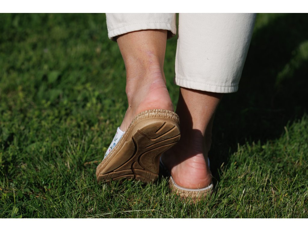 A női papucs talpa ortopéd profillal rendelkezik, amely biztosítja a helyes lábtartást a cipőben. A papucs talpbetétje bőrből készült, amely maximális kényelmet biztosít járás közben.