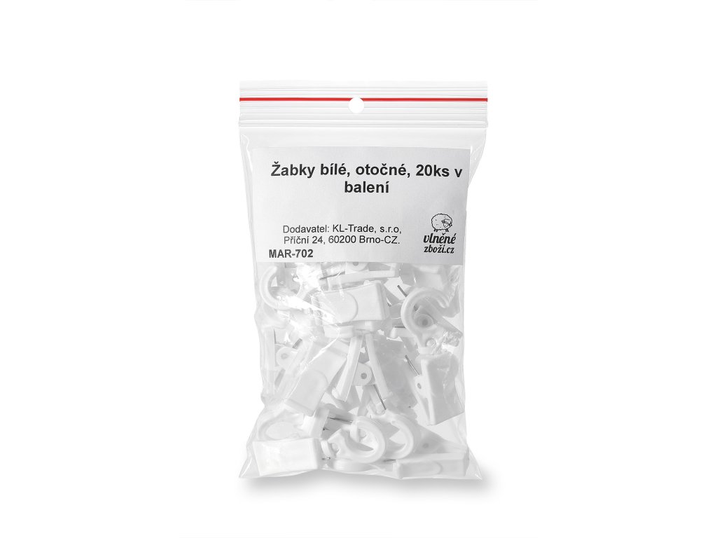 A minőségi fehér műanyag fűggönycsipeszek 28 mm átmérőjű függönykarikákkal való használatra készültek. A flip-flopok forgóhoroggal vannak ellátva, amely a gyűrűre akad. A csomag 20 műanyag békát tartalmaz forgóhoroggal.