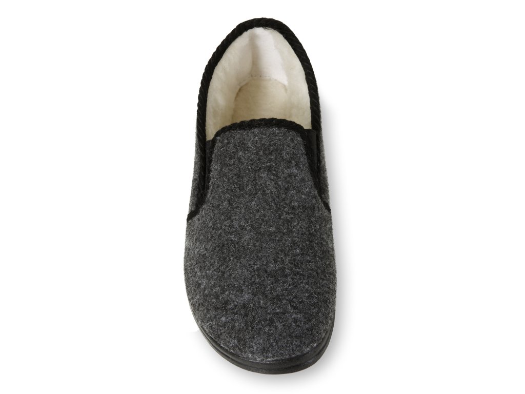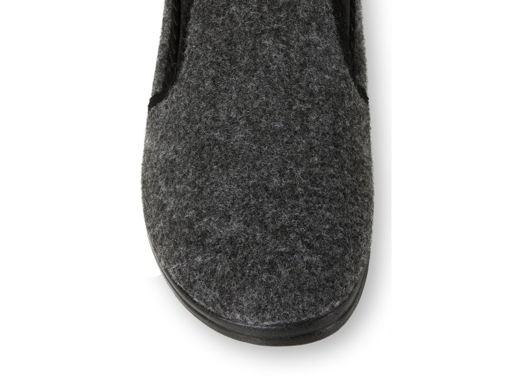 Anyag: felső rész - nem szőtt poliészter / birkagyapjú (filc); belső bélés - filc; talp - csúszásmentes műanyag, poliuretán; Kapható méretek: 40-46, A sarok típusa és magassága: lapos, 3 cm; Szín: sötétszürke