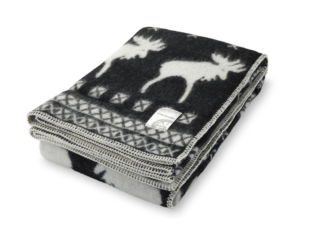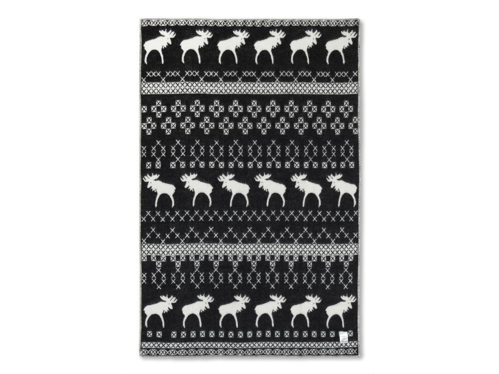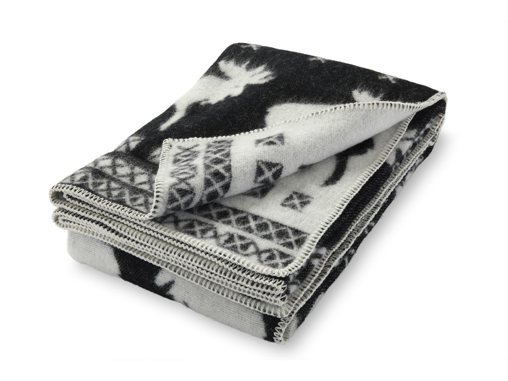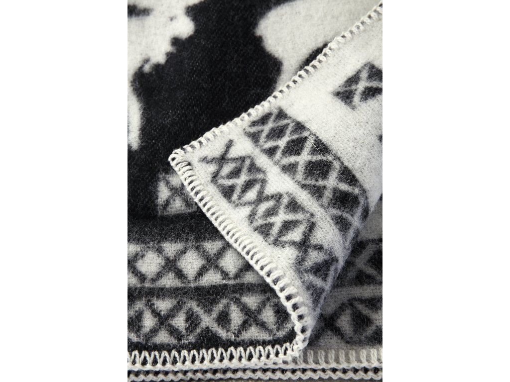 Anyag: 88% új-zélandi juhgyapjú + 12% pamut, Méret: 130 x 200 cm, Szín: fekete-fehér, Megjelenített motívum: rénszarvas, Súly: 1,2 kg, Súly: 480g/m2