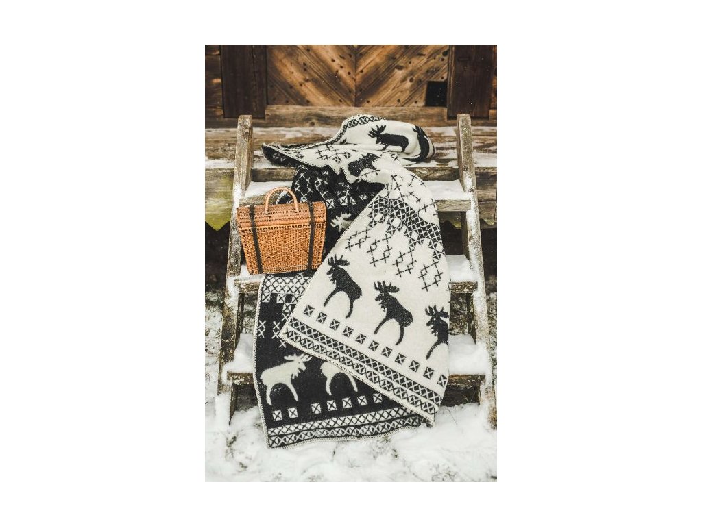 Ez a fekete-fehér rénszarvas motívummal ellátott puha pléd stílusos kiegészítője bármely belső térnek. A mosáshoz csak gyapjúhoz való mosószereket használjon. A ajánlott a lanolin használata, amely segít a szálak puhításában és meghosszabbítja a plédek élettartamát.