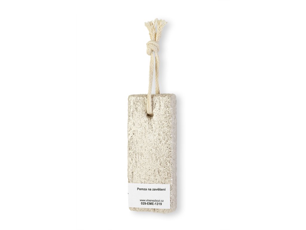 A 10 x 4 x 1,5 cm méretű habkő zsinórral van ellátva. A habkő a lábak régi, korrodált bőrének eltávolítására szolgál.