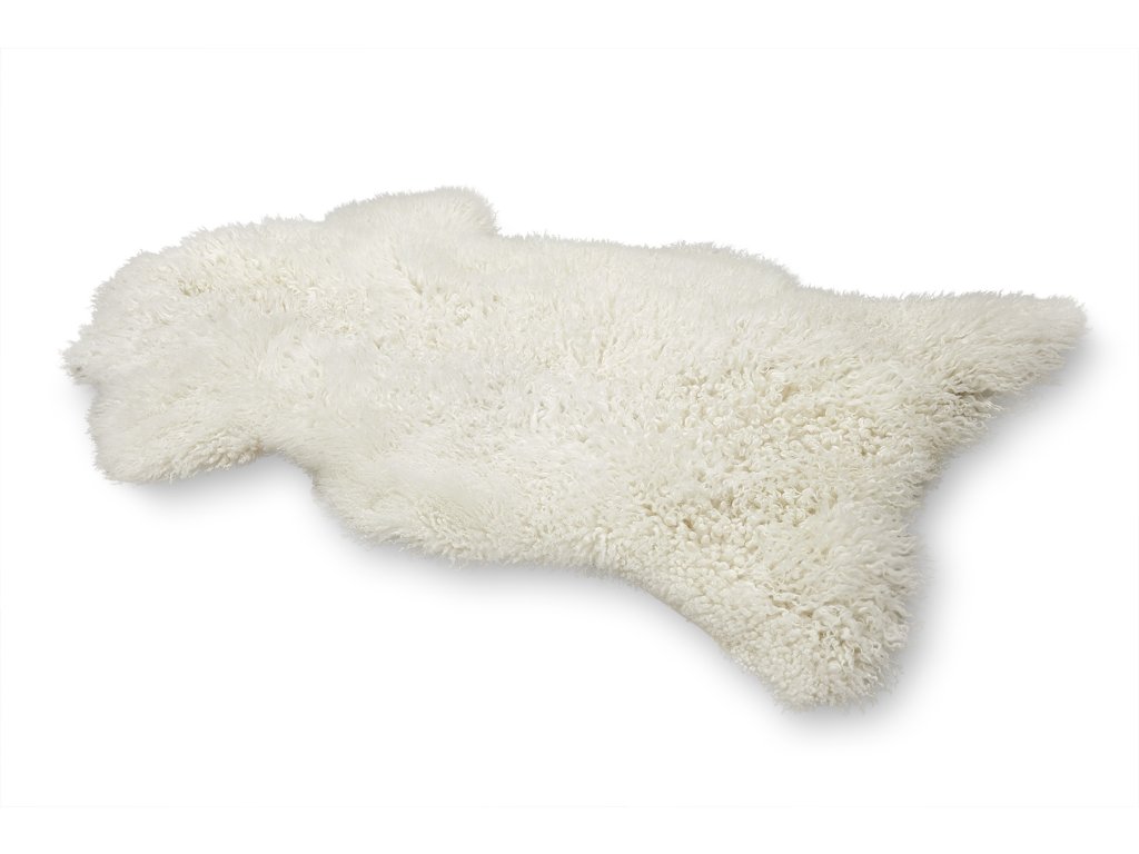 Anyag: természetes báránybőr, színe: krémfehér, bolyhosság: göndör, átlagos méret: 100 x 80 cm