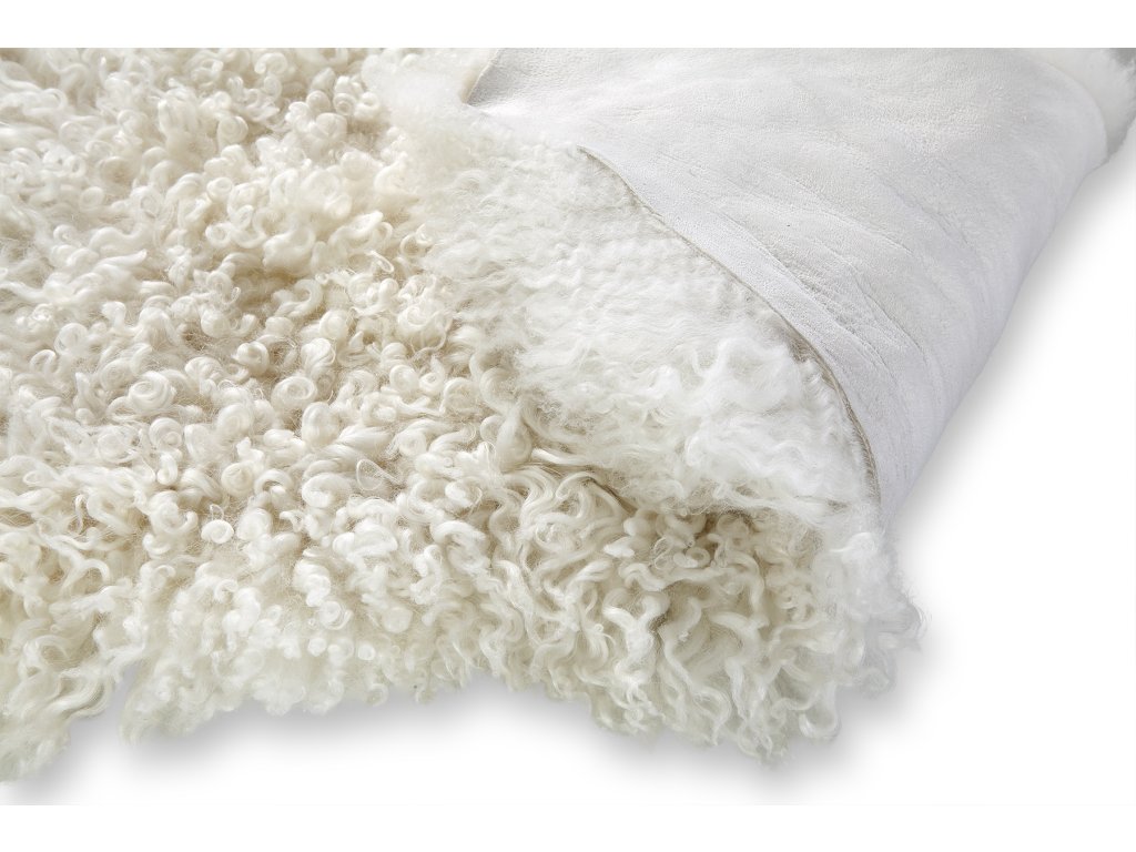 A birkabőrök természetes eredetűek, a szőr és a felület krémfehér színű. Ez a báránybőr kivételes a göndör szőrzete miatt.