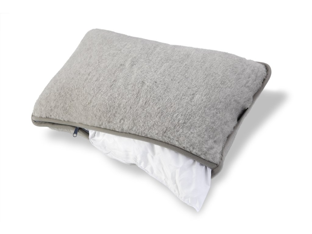 Anyag: 95% ausztrál merinó + 5% alpaka gyapjú; Méret: 40 cm x 60 cm; Szín: szürke; Töltelék: 50% szilikon golyók + 50% memóriahab darabok; Súly: 500 - 550g/m2; Mosható huzat: IGEN