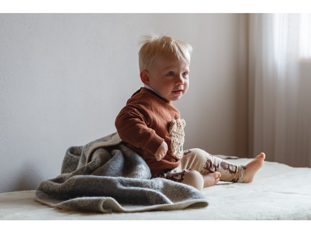 Gyapjú pléd gyerekeknek göndör szőrű kos motívummal