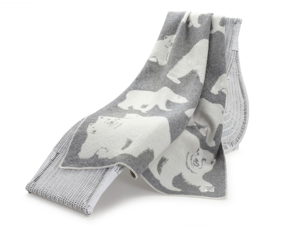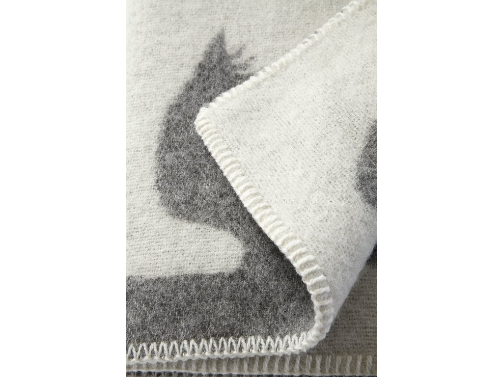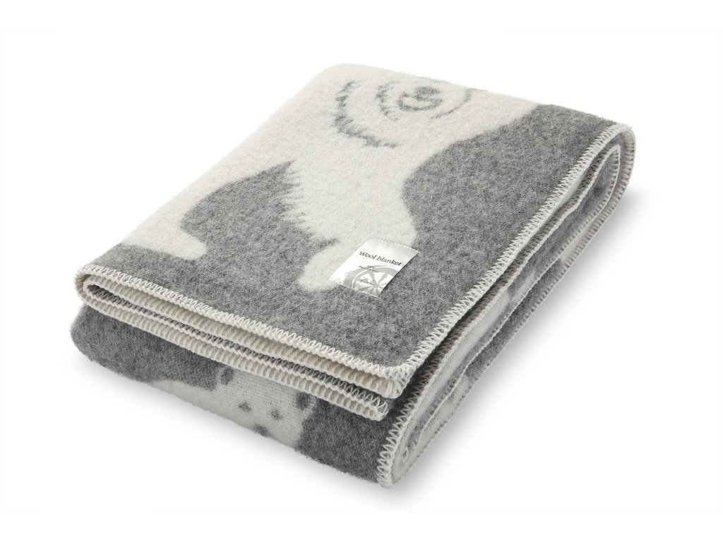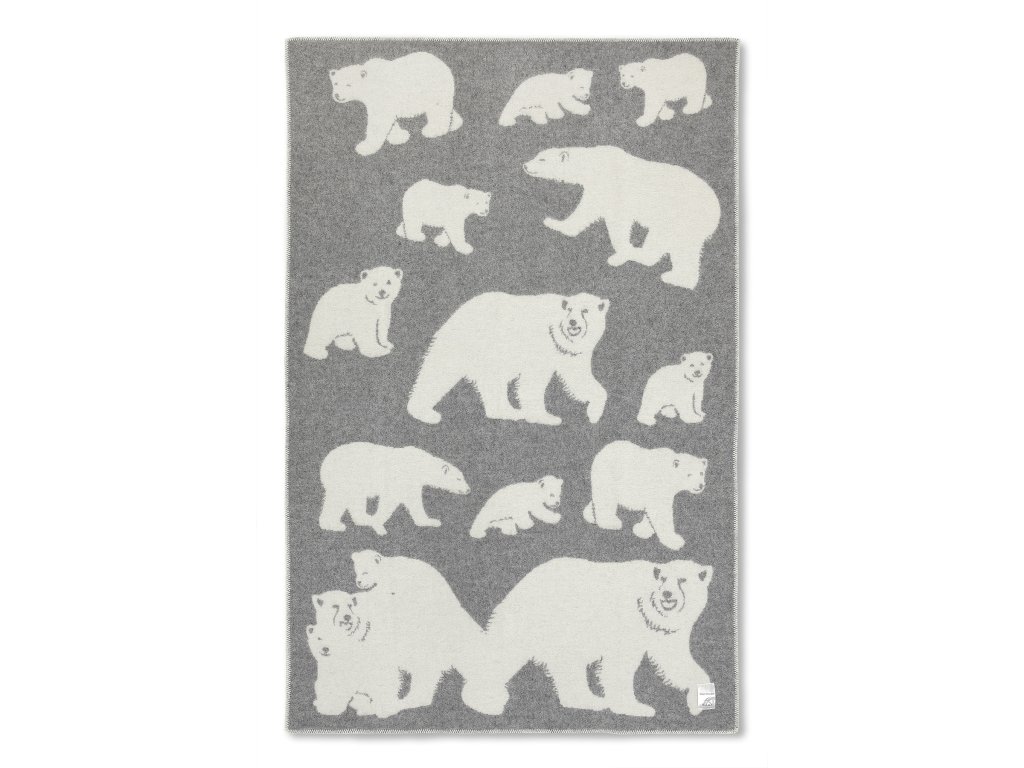 Anyag: 88% új-zélandi juhgyapjú + 12% pamut, Méret: 130 x 200 cm, Szín: szürke és fehér, Ábrázolt motívum: jegesmedve, Súly: 1,2 kg, Súly: 480g/m2