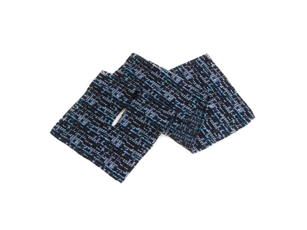 Ez a gyapjúkötés a sötétkéket a feketével ötvözi, és viselés közben nagyon könnyű és légies.