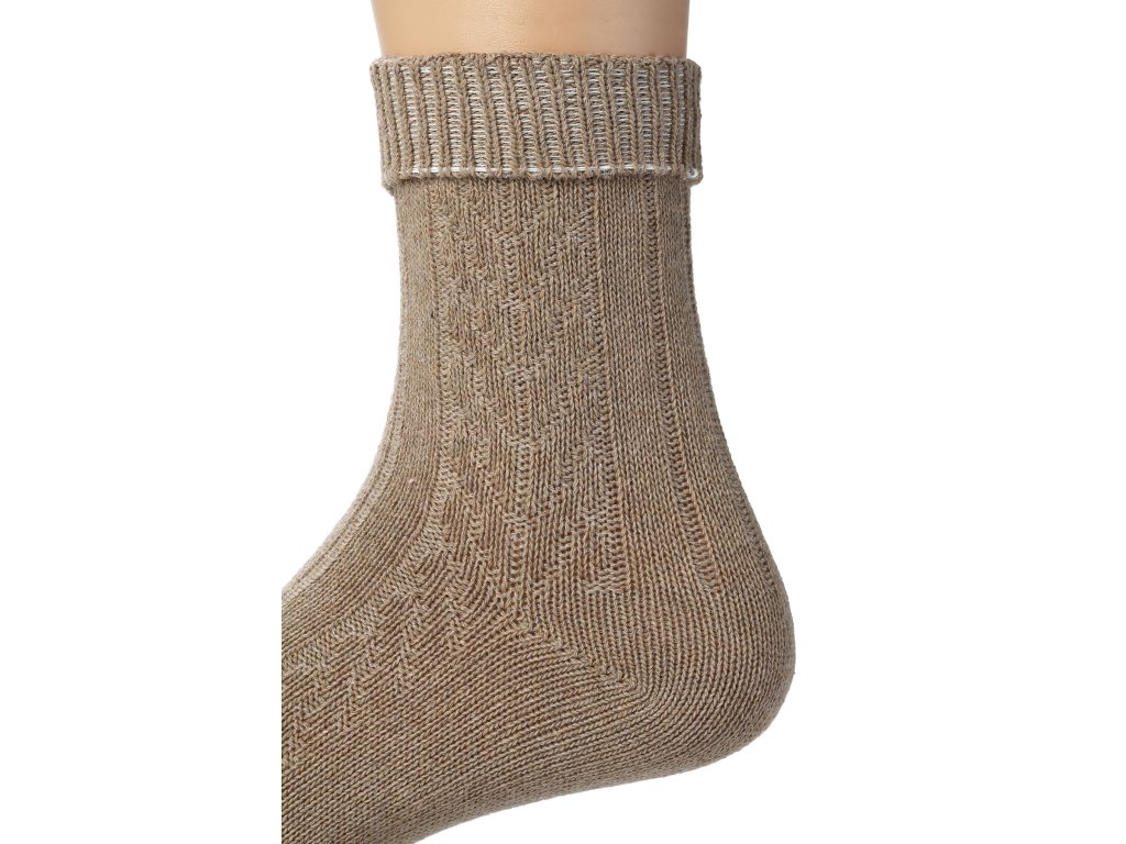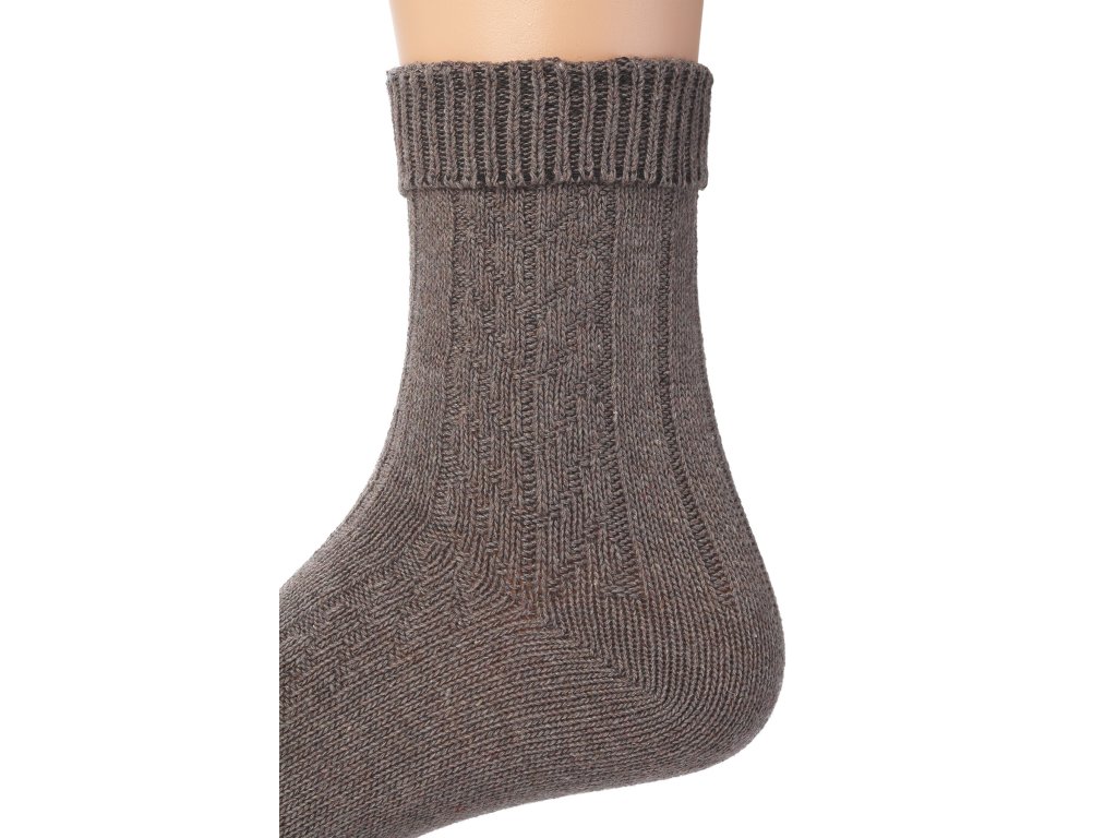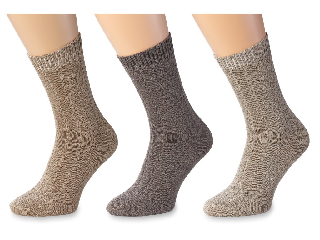 Hagyományos női zoknik készlete, fonott mintával, a barna különböző árnyalataiban. A gyapjú zokni szett 3 pár zoknit tartalmaz a megadott méretben. A zokniknak laza szegélye van, használat közben nem szorítják a lábat. Ön a barna szín kedvelője? Akkor ezek a zoknik éppen Önnek készültek.