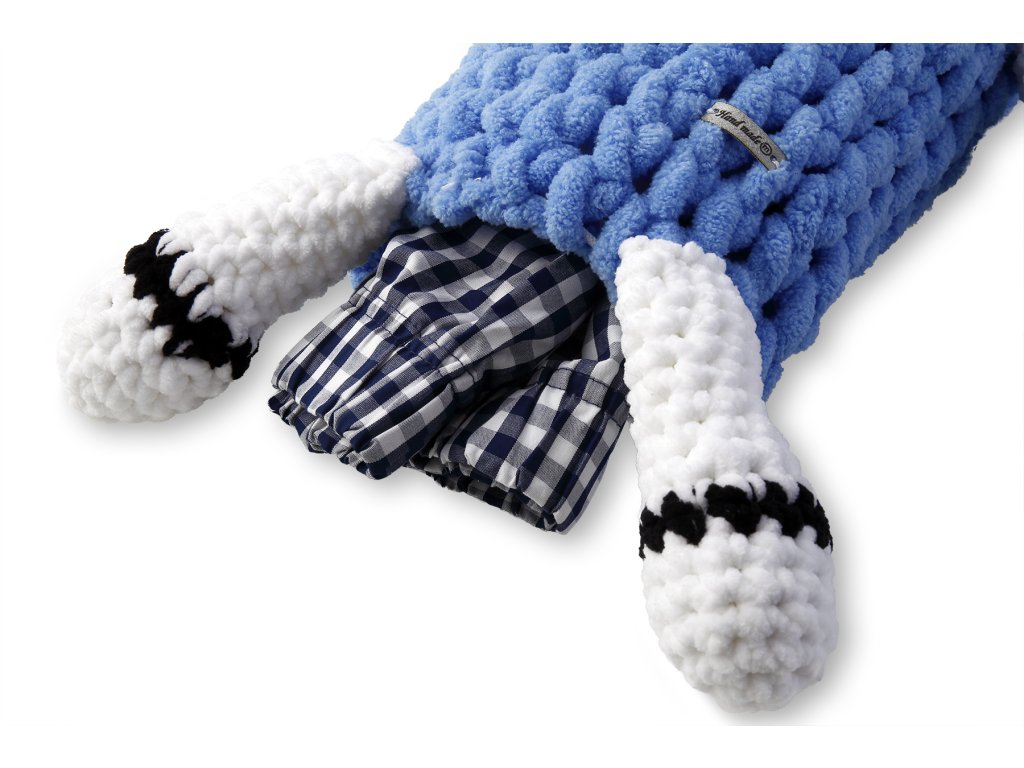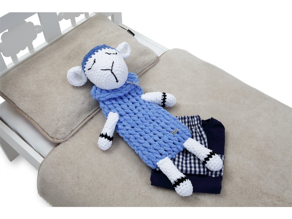 A kék bárány alakú pizsamás angolna játékként is szolgálhat. Ez a puha pizsama táska nagyon népszerű a gyerekek körében, köszönhetően aranyos és szép kialakításának. A táska alján van egy nyílás, amelybe az összehajtogatott pizsamát helyezheti, és a zsinór meghúzásával lezárhatja. A felhasznált anyag könnyen mosható mosógépben gyapjúprogramon vagy kíméletes mosási programon. A termék puhaságának, finomságának és formájának megőrzése érdekében ajánlott a zsákot mosózsákban mosni. Az egyes szálak mosás közbeni kihúzódásának megakadályozása érdekében. Így nagyon könnyen tisztán tartható. A pizsamatáska hossza kb. 40 cm, így több pizsama is elfér benne. A táska két pizsama számára is használható testvérek számára. A szülők értékelni fogják a praktikus használatát.