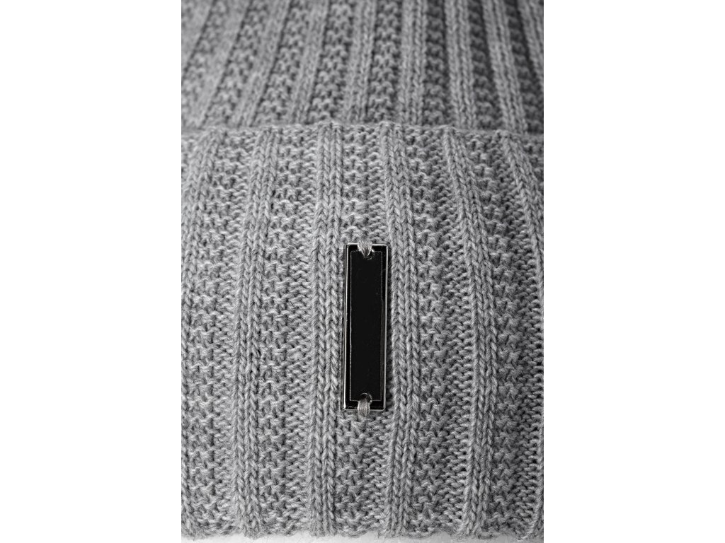 Stílusos, modern és meleg női téli sapkák pomponnal, egyszerű szürke színben. A női sapka külső felülete géppel kötött. Ez a téli sapka dupla szegéllyel rendelkezik a homloknál, a füleknél és a tarkónál. Ez nagyon kényelmessé teszi a sapka viselését, mivel a dupla szegélynek köszönhetően kellemes meleget biztosít ezeken a problémás területeken, különösen télen. A belső kötés puha polár anyagból készült, amely nagyon finom és meleg tapintású.