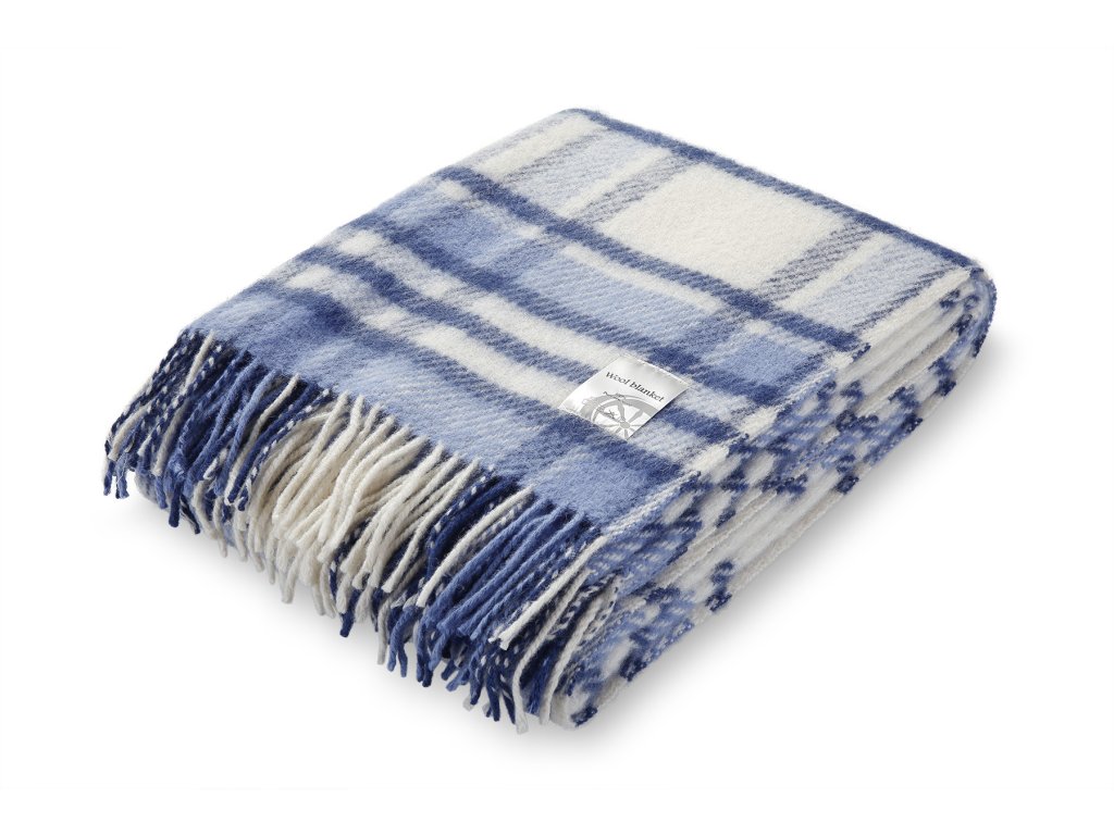 Anyag: 100% új-zélandi juhgyapjú, Méret: 130 x 210 cm, Szín: kék és fehér, Súly: 1, 05 kg, Súly: 480g/m2