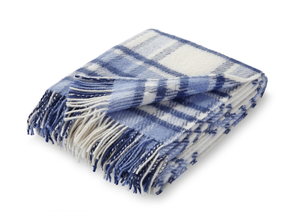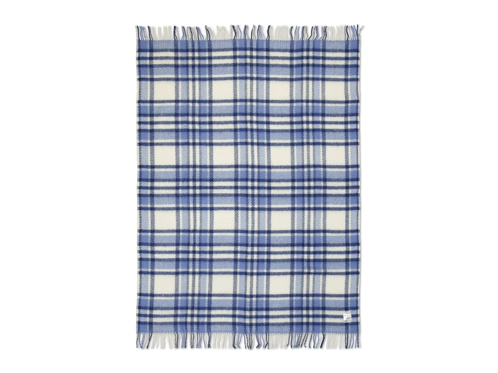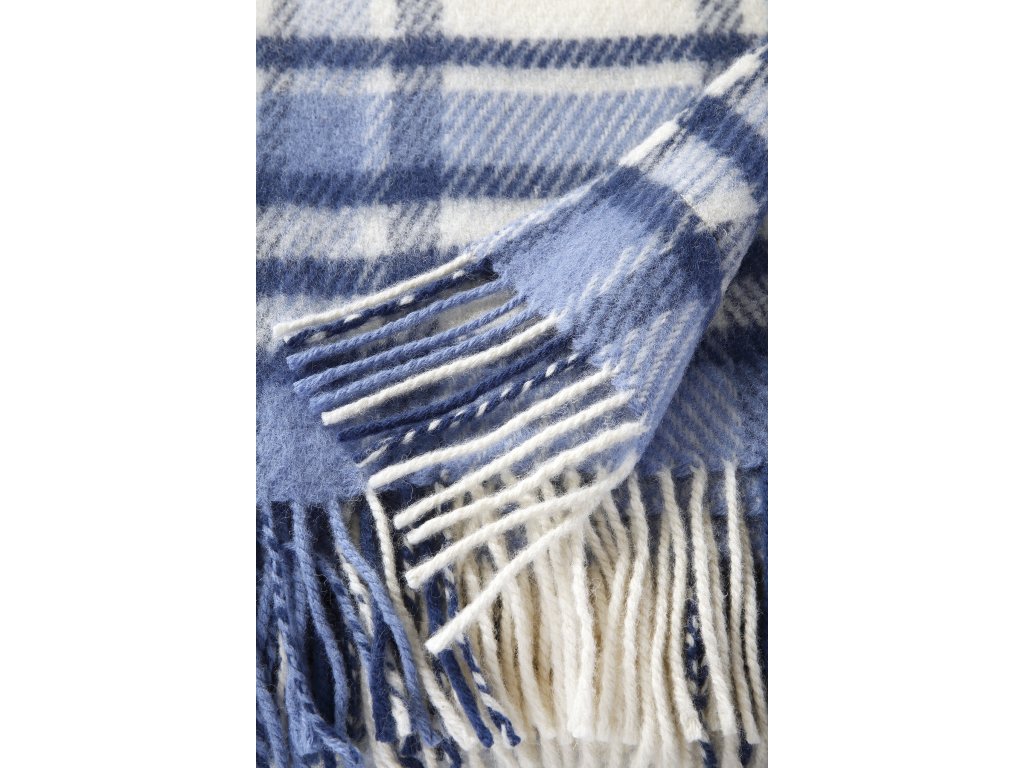 Kék-fehér gyapjú pléd rojtokkal