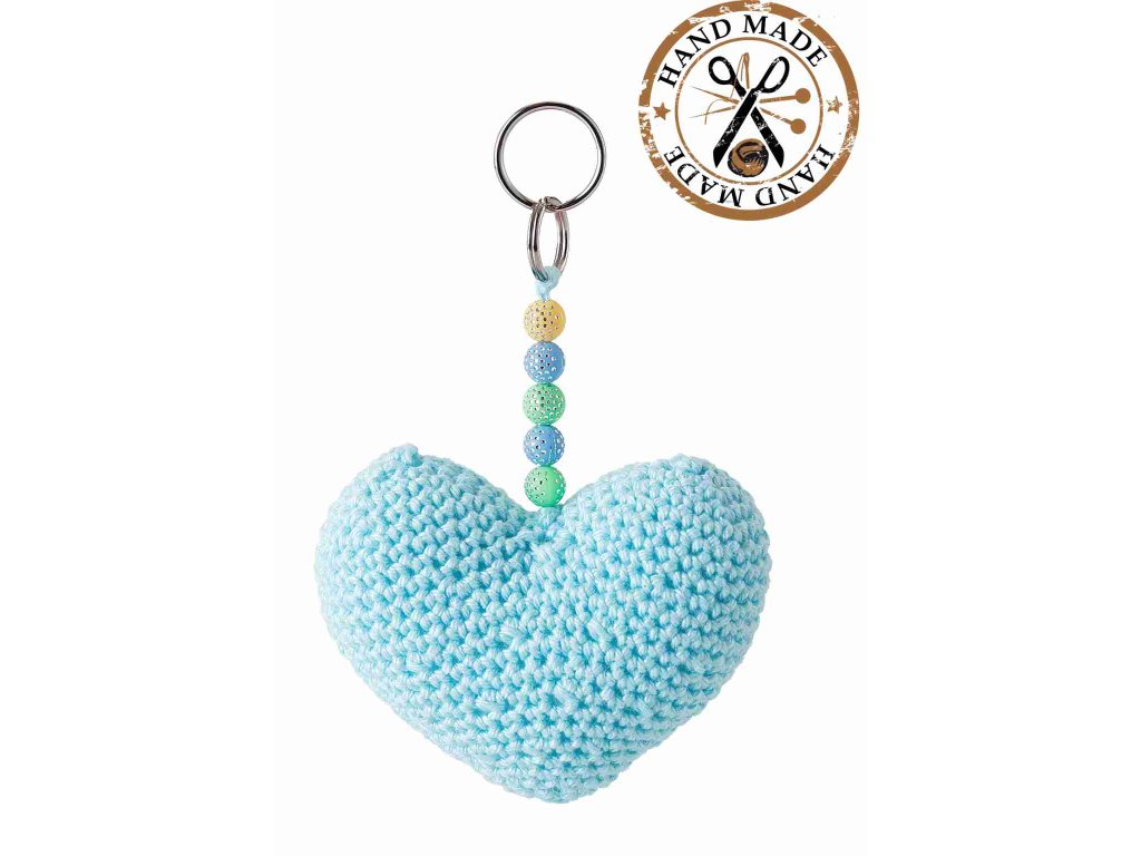 Kézzel horgolt medál 100% juhgyapjúból, kék szív alakban. A szív alakú medál felakasztható díszként a kulcsokra vagy a hátizsákra. Használhatják gyermekek és felnőttek egyaránt. Kapható kék színben.