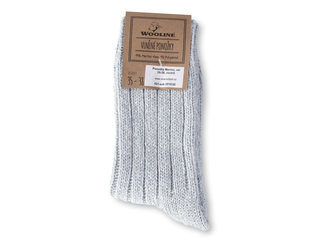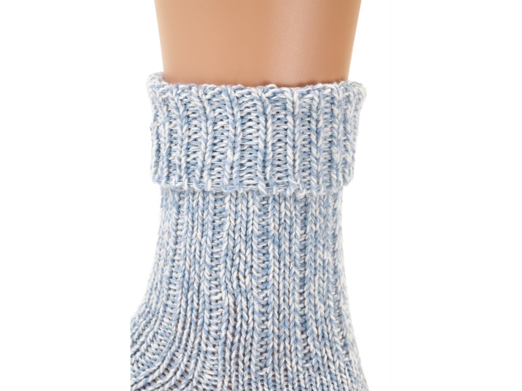 Anyag: 99% merinó gyapjú, 1% poliamid, Szín: világoskék, Méret: 35-42 EUR, Szegély: laza