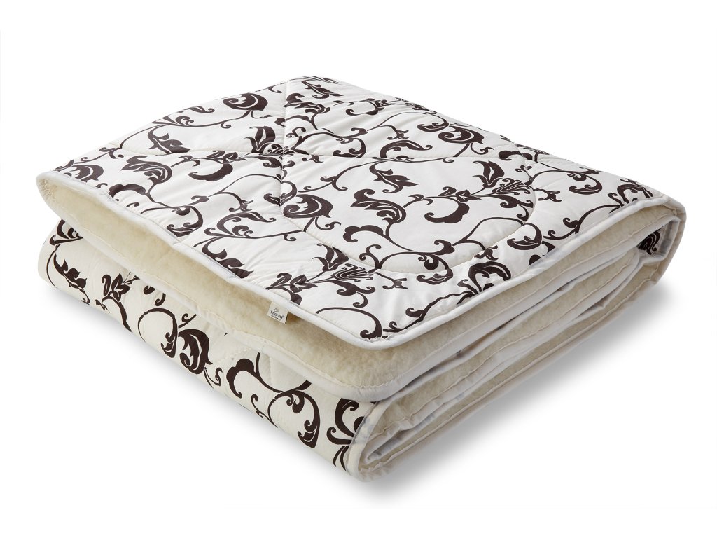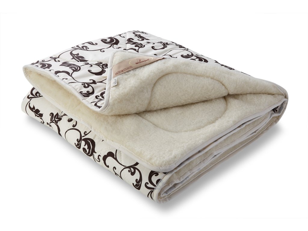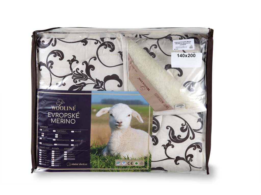 Anyag: 100% európai merinó / 100% nyomtatott pamut, Kialakítás: kétoldalas- a hátoldalon sötétbarna díszítéssel, a hátoldalon egyszínű, világos krémszínű, Méret: 140 x 200 cm, Súly: 2, 5kg, Súly: 450g/m2