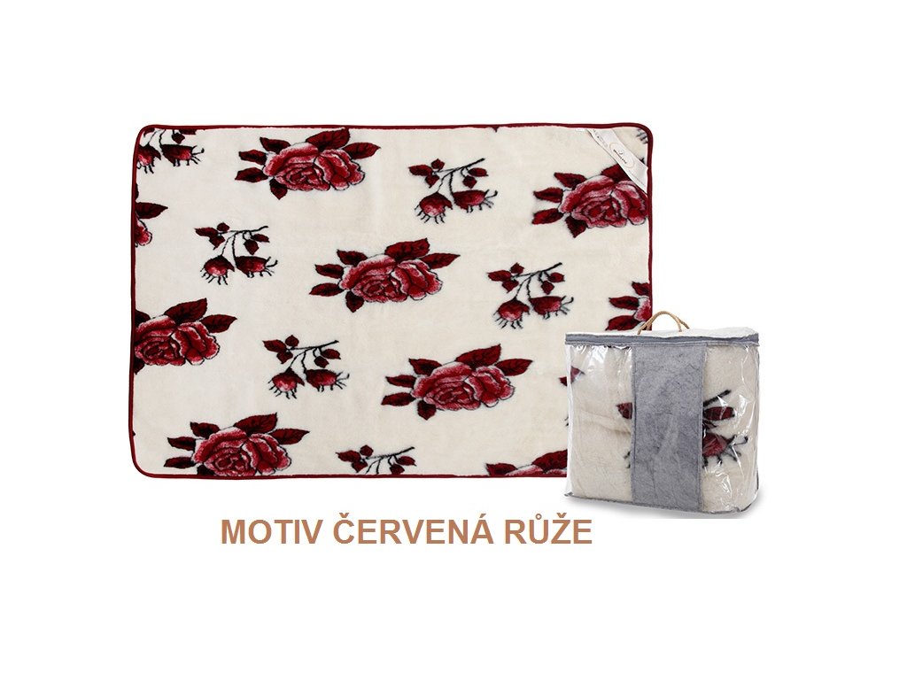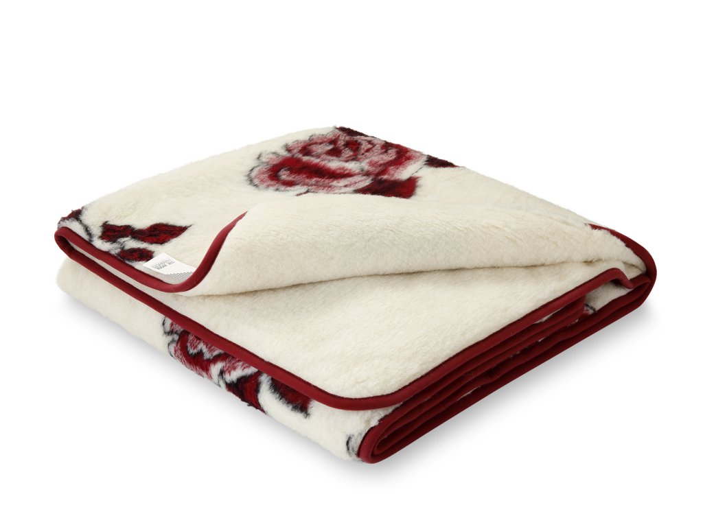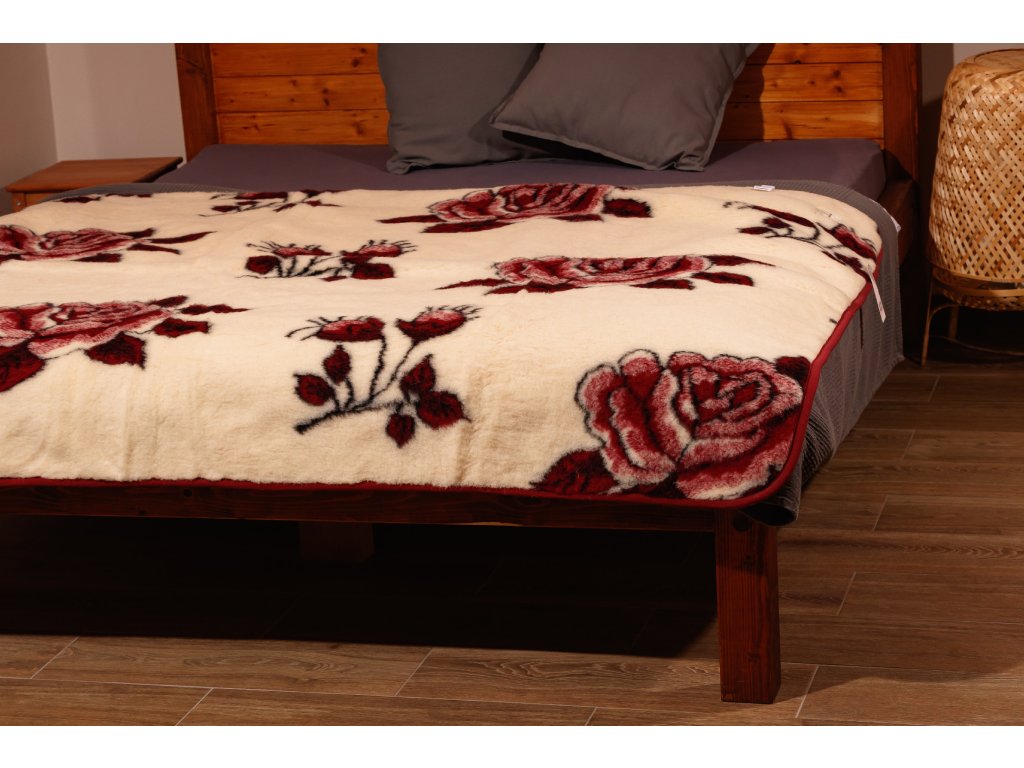 Kétoldalas gyapjú takaró 135 x 200 cm, piros rózsás mintával