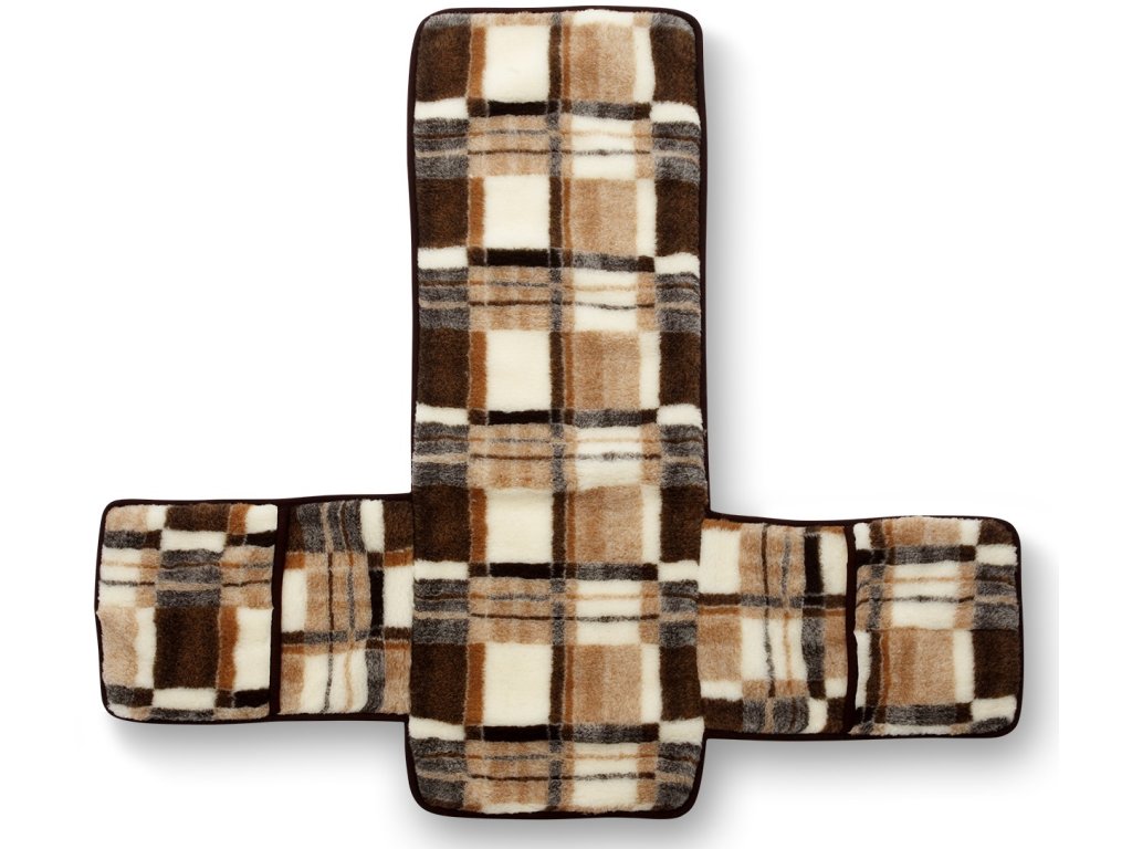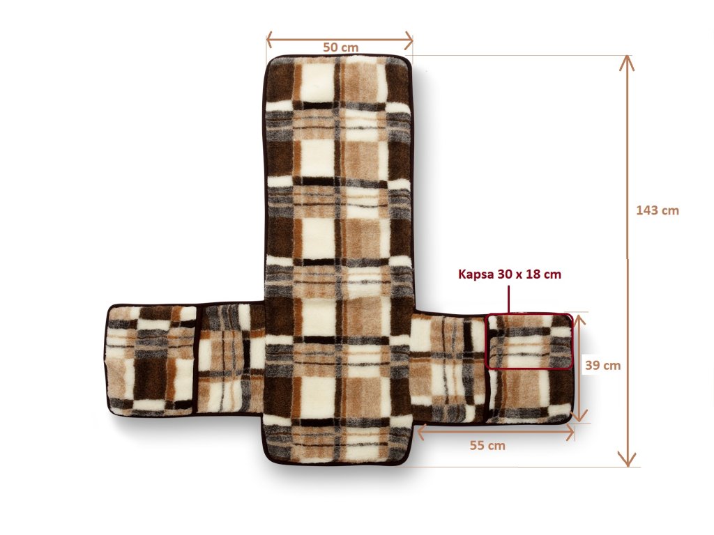 Anyag: 100% juhgyapjú - európai merinó, Méret: teljes ülőfelület - hossz 143 cm x szélesség 50 cm, (lásd a részletes méreteket az alábbi képen), Szín: a hátoldal és az elülső oldalkockás