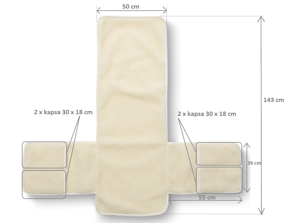 A székpárnát úgy tervezték, hogy teljes hosszában a fotelra fektesse. Hajtsa ki az oldalakat jobbra és balra. A székpárna felső részét a fej mögötti területen részben hajtsa be. Alul a huzat szabadon fut a fotel széle mellett. A huzat kb. 4 cm-es átfedéssel rendelkezik a fotel szélén. A fotelra való gyapjú székpárna jobb és bal oldalán oldalsó panelek vannak, amelyeket át kell hajtani a fotel karjain. A székpárna praktikus zsebekkel van ellátva az irányítónak, a távirányítónak, vagy újságoknak. Ezek a praktikus zsebek a bal és a jobb oldalon is megtalálhatók. Egy zseb mérete: szélesség 18 cm x magasság 60 cm.