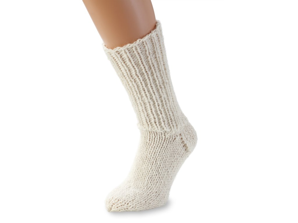 Népszerű hagyományos gyapjú térdzokni klasszikus 100%-os birkagyapjúból, mégpedig európai merinóból. Ez a kézzel kötött térdzokni nem tartalmaz poliésztert vagy más olyan szálakat, amelyek lágyítanák a zoknit, vagy rugalmasabbá tennék azt. Ez a gyapjú zokni megtartja a formáját, és kissé durvább tapintású.