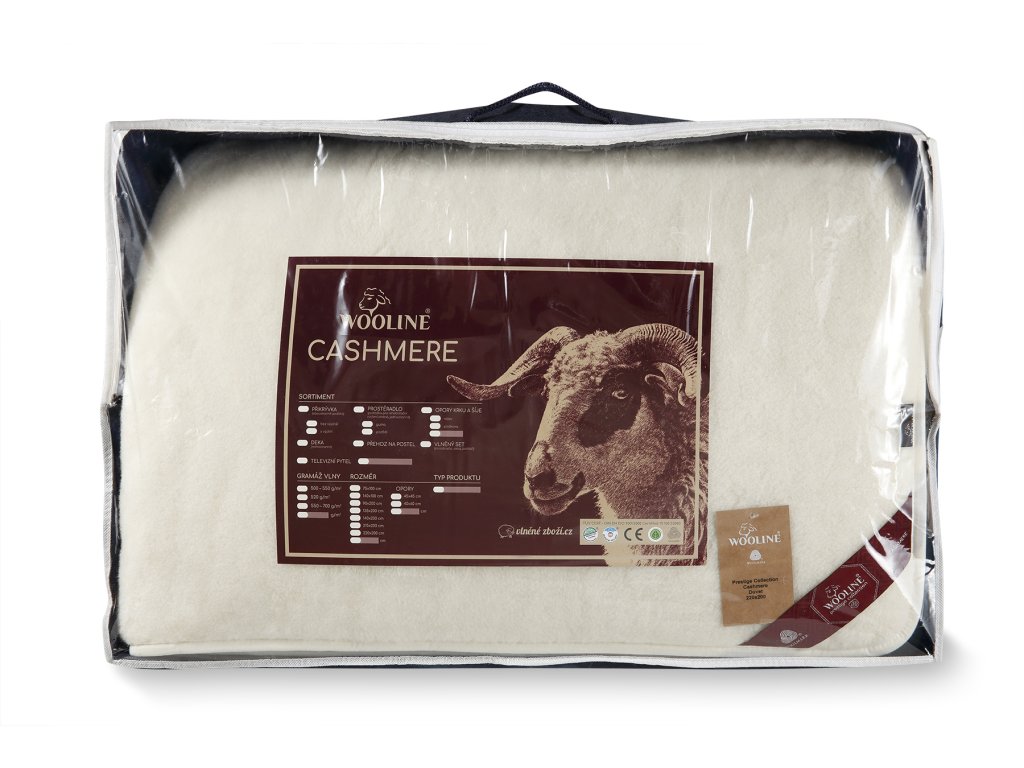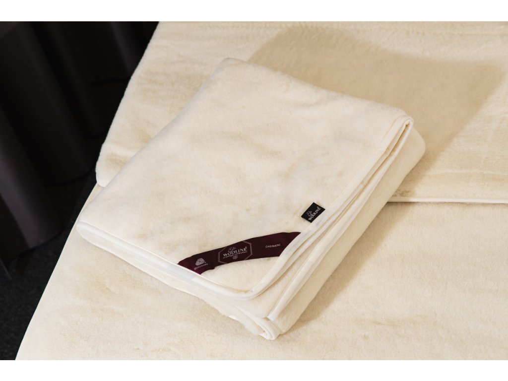 Anyag: 95% ausztrál merinó + 5% kasmír; Kialakítás: kétoldalas - a pléd két gyapjú pléd "lap" összevarrásával készül, a kerület körül szegéllyel; Szín: a hátoldal és az előlap világos krémszínű; Méret: 220 x 200 cm, Súly: 4,7 kg, Súly: 2 x 500 - 550 g/m2