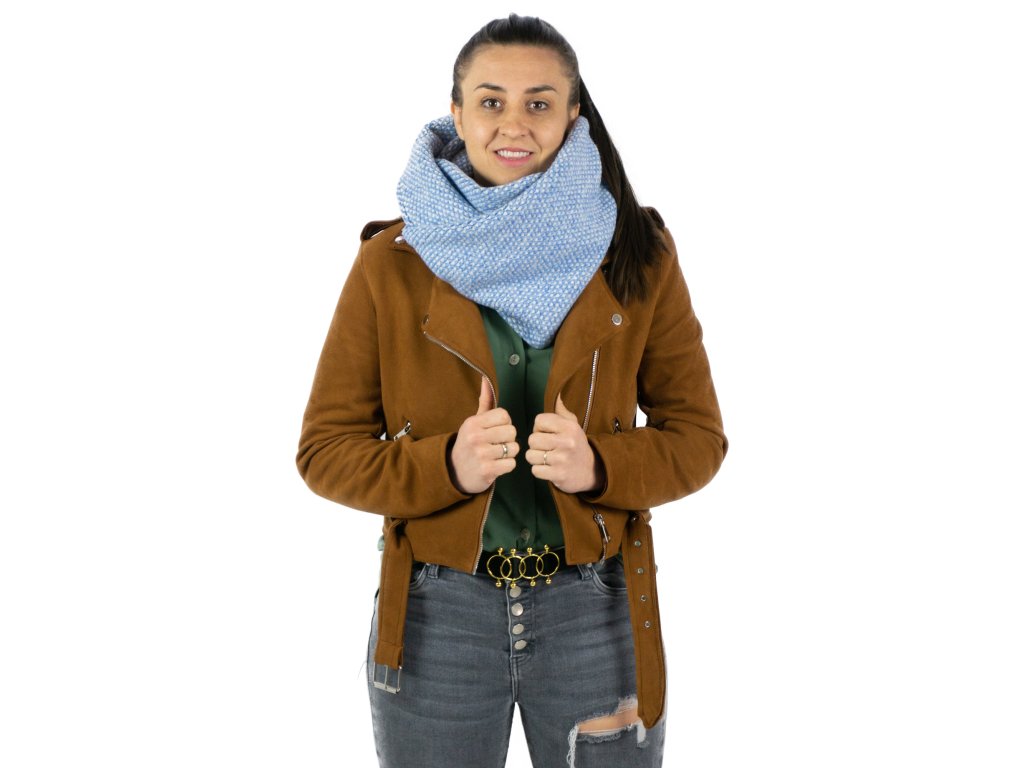 A hosszú téli nyakmelegítő egyfajta végtelen sál, amely gyapjú anyagból készül, és arra szolgál, hogy melegen tartsa és megvédje a nyakat a hidegtől a téli hónapokban. A valódi birkagyapjúból készült világoskék női fülvédő praktikus kiegészítő minden nő ruhatárában.
