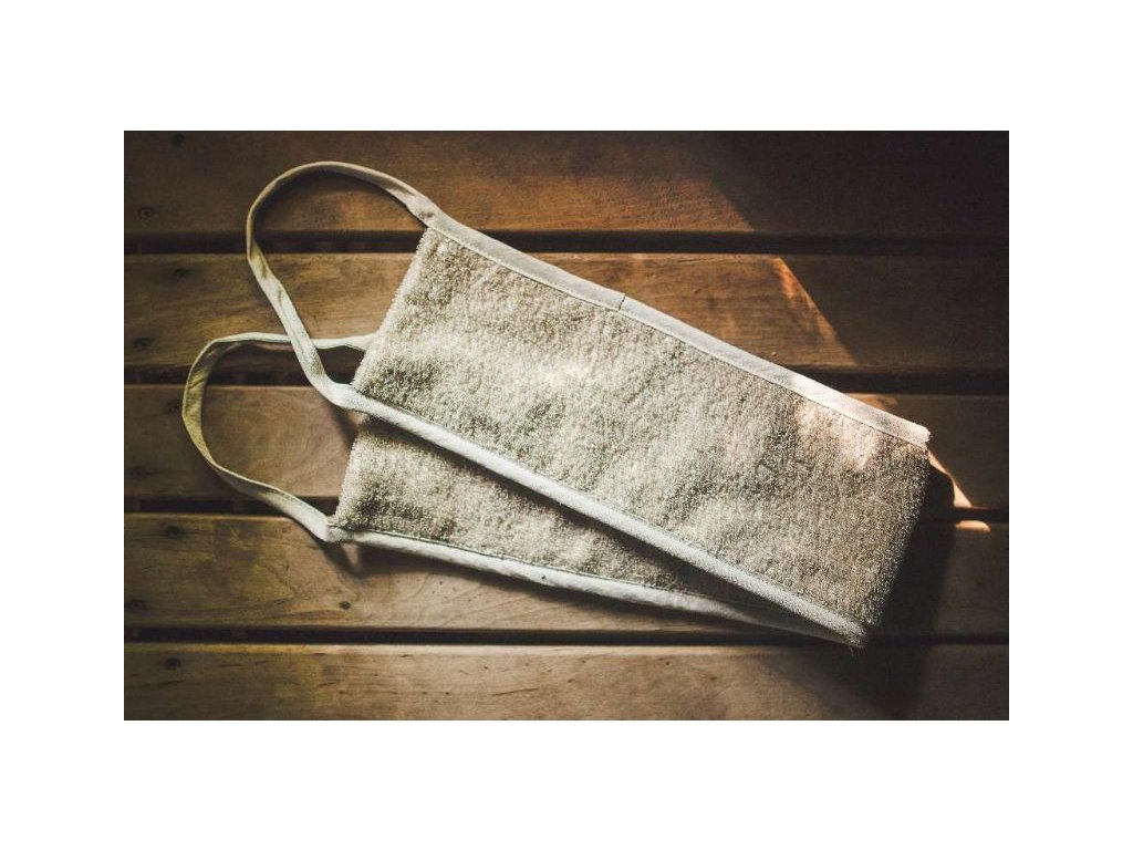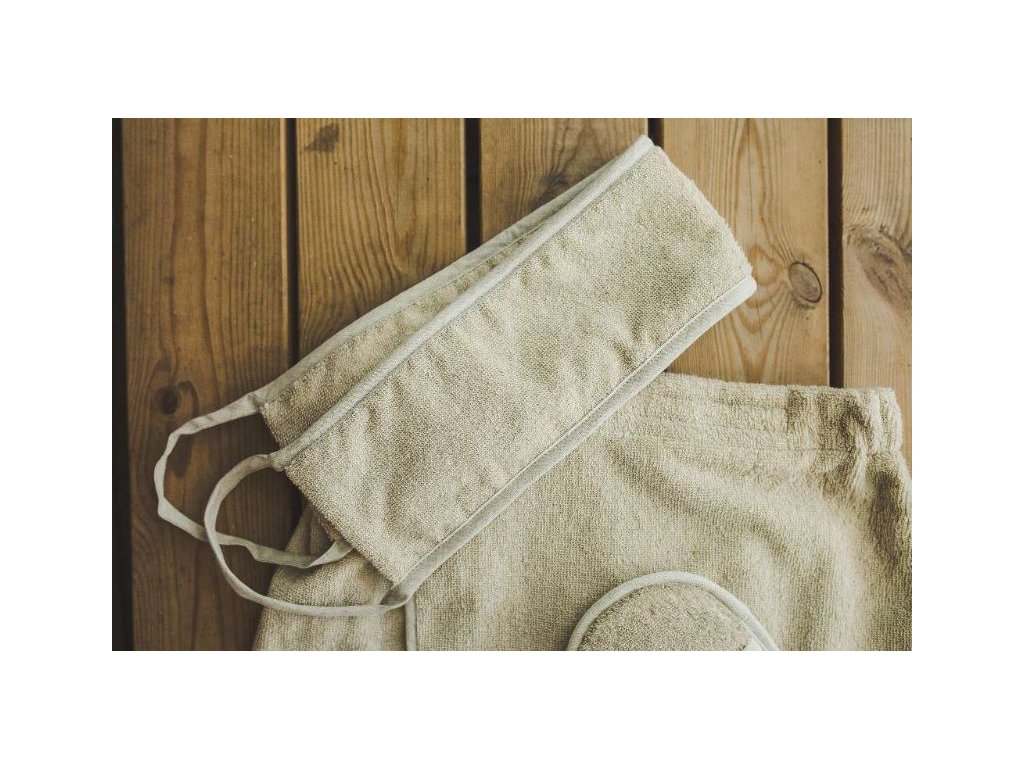 A szaunamasszázs öv 75%-ban lenszálból és 25%-ban pamutszálból készül. Ez a masszázsöv nedves és száraz bőrtisztításhoz készült. A száraz masszázs természetes "hámlasztóként" működik. A száraz masszázs során javul a bőr állapota. A szalagokkal végzett masszázs segít csökkenteni a cellulitisz jeleit, és serkenti a nyirokáramlást. Ez egy nagyszerű módja annak, hogy megszabaduljunk a felesleges stressztől