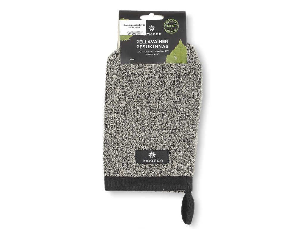 A szaunamasszázskesztyű természetes anyagokból, nevezetesen lenből és pamutból (60/40%) készül, és a bőr mosására és masszírozására szolgál szaunázás közben. A masszázskesztyű gyengéden tisztít és masszíroz, és alkalmas az elhalt hámsejtek eltávolítására a bőrfelületről. A kesztyű vászonfelülete tökéletesen eltávolítja az elhalt hámsejteket és minden szennyeződést. Ugyanakkor serkenti a természetes vérkeringést, elősegítve a bőr egészséges ragyogását és rugalmasságát. A kesztyű tehát mosókesztyűként, masszázskesztyűként vagy hámlasztókesztyűként is használható.
